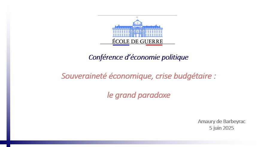 Cette conférence de macro-économie, dispensée depuis 2015 aux officiers supérieurs de l’École de Guerre, présente la situation budgétaire française et identifie des solutions pour sortir de la crise des finances publiques.